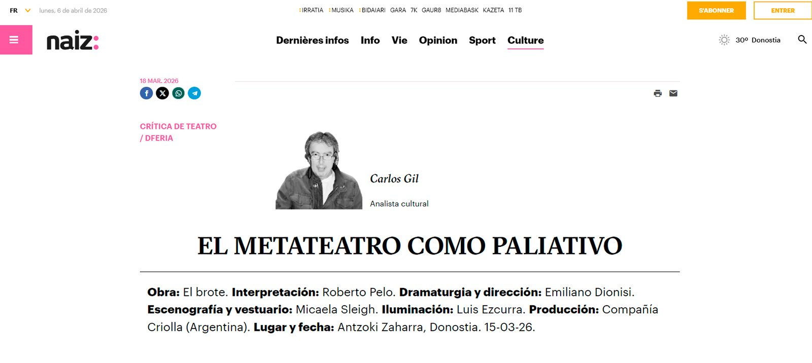 Obra seleccionada para el Catálogo REDELAE (Red Eurolatinoamericana de Artes Escénicas) 2024